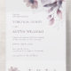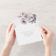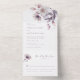 Elegante todo morado en una sola boda. Suave, soñadora y romántica, este elegante boda, en una sola invitación con tarjeta RSVP, presenta un magnífico ramo acuarela de hojas y flores pintadas a mano en tonos monocromáticos de púrpura, ciruela y rosa suave con un guión y texto púrpura a juego. Encontrar elementos coincidentes en la Colección Boda Botánico Elegante Púrpura.