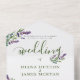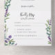 Elegante carta de invitación a la boda de la caligrafía de lavanda con una tarjeta de colores lavanda para personalizar con tu propia información. presenta tipografía moderna y caligrafía elegante con flores de acuarela de lavanda.