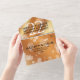 Haz que el 22º aniversario de bodas de cobre sea una celebración inolvidable con estas invitaciones conmemorativas todo en uno. La elegante letra en negro y blanco con confeti hexagonal en papel de aluminio de cobre y fondos negros añaden un toque memorable para esta ocasión especial y hito extraordinario. Personalice con los nombres de la feliz pareja, fecha del lugar de celebración, dirección y hora, más las direcciones de envío del remitente y destinatario.