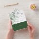 DISPONIBLE CON O SIN CÓDIGO QR PARA ESCALAR. Eleva tu día de bodas con la belleza intemporal de nuestra delicada y verde invitación a la boda. Con un fondo blanco prístino, los tallos sueltos de helechos de acuarela verde suave adornan con gracia el lado izquierdo, creando una exquisita y elegante muestra de la gracia de la naturaleza. El exterior, adornado con una sólida y suave solapa verde de helecho y el fondo, se funde perfectamente con el inmaculado espacio blanco medio, con una vegetación más delicada. Esta invitación capta la esencia de la elegancia orgánica, prometiendo encantar a sus huéspedes y marcar el tono perfecto para su día especial. Dejen que su historia de amor se desarrolle en medio de la exuberante tranquilidad de lo mejor de la naturaleza. Creado por Simply Farmhouse Press.