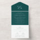 Invitación Todo En Uno Elegantes iniciales simple boda verde azulado oscu