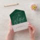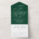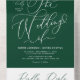 Invite a la familia y amigos con esta invitación a la boda todo en uno de los personalizables. Presenta un capricho caligráfico. Personalice esta invitación a la boda con guión agregando nombres, fecha, hora y otros detalles. Esta invitación a la boda con una caligrafía verde esmeralda es perfecta para cualquier época de boda o tema.