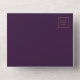 The left-hand edge of this elegant modern all-in-one wedding invitation and RSVP features an emerald green watercolor agate border trimmed with faux gold glitter. The customizable text combines gold-colored whimsical handwriting, copperplate and italic fonts on a purple background. The return address appears on the outside flap and the reverse side of the detachable RSVP card in gold-colored text on solid purple. A QR code is included on the RSVP card for guests who would prefer to reply online.