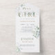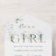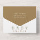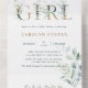 Todo ello en una tarjeta de invitación a la ducha para bebés, con eucalipto de color agua pintado, hojas verdes y letras doradas botánicas con una tarjeta de rifa de pañal. Para una personalización más avanzada de este diseño, haga clic en el vínculo Personalizar adicional para cambiar el tipo de letra, el tamaño y el color.