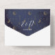 Esta invitación a la boda todo en uno presenta una tipografía elegante sobre la luna celeste y el fondo de las estrellas. La invitación incluye una tarjeta RSVP perforada. Diseñado por Thisisnotme©