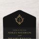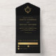 Invitación Todo En Uno Escudo Black Faux Gold Elegant Wedding Monograma