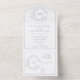 Invitación Todo En Uno Escudo de Leafy Azul agitado Monograma Boda