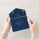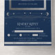 Mystical Moda Blue Silver Star Moon Astronomy Space Wedding Invitation presenta sol plateado, luna y estrellas con un marco dorado sobre un fondo azul marino oscuro. Adentro está tu información de invitación de boda personalizada. Debajo está la tarjeta extraíble RSVP con tres opciones de comida para que los huéspedes la retiren y regresen. Personalice editando el texto en los cuadros de texto. Para un número adicional de opciones de comida con este diseño visite nuestra tienda y vea nuestra colección. El tipo de comida se puede cambiar simplemente editando el texto en la sección de personalización de este diseño. Personalice a los invitados individuales agregando sus nombres y direcciones personalizados en cada invitación. Diseñado por ©Evco Studio www.zazzle.com/store/evcostudio