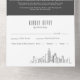 ¿Cómo suena para impresionar a tus futuros invitados enviando elegantes invitaciones de boda, haciendo que el proceso RSVP sea rápido y fácil para ellos, y ahorrando dinero simultáneamente? — Bueno, estas únicas invitaciones de boda todo en uno son la respuesta. Estas hermosas invitaciones en negro, gris carbón y blanco están especialmente diseñadas para un boda en la maravillosa ciudad de Chicago, Illinois. Esta invitación triplicada le ayuda a cubrir todas las bases de la carta de reproducción de invitación, sobre y RSVP mientras se presenta en un moderno y divertido estilo de deco. El exclusivo paisaje estilizado de la ciudad honra tanto el interior como el exterior de la invitación. — Utilice la plantilla fácil de seguir para completar la invitación a su gusto, que incluye opciones opcionales de opciones de menú RSVP y todos los detalles del boda de su día especial.