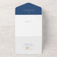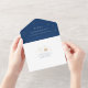 Esta invitación a la boda de oro y azul marino marca el comienzo de tu espléndido viaje conyugal. Combina cuidadosamente la invitación principal con una tarjeta RSVP desmontable y una sección para los detalles del boda, incluyendo su dirección web, presentando una armoniosa mezcla de elegancia y lujo. Decorado con motivos del cosmos, como la luna creciente, un halo de sol radiante, estrellas brillantes, planetas vagabundos y grandes constelaciones, captura el enigmático encanto de un cielo nocturno cubierto de estrellas. Diseñado a medida para temas como "Under the Stars", "Written in the Stars" o "To the Moon and Back", es una invitación para que tus invitados se unan a una encantadora y romántica odisea.