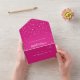 Un fondo rosado caliente, falsas estrellas doradas. Personalice y agregue un nombre, detalles del fiesta, fecha RSVP. El nombre se escribe con un guión de estilo con letras a mano