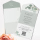 Invitación Todo En Uno Eucalyptus Elegante Foliage de acuarela Código QR