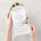 Modern Sunflower Eucalyptus Greenery Boda Botánico All in One Invitation" que se diseñan con una postal RSVP perforada fácil de desgarrar. Doble fácilmente cada tarjeta utilizando la forma de contorno como guía, sella y envíela a sus invitados y el coste de ahorro no necesita ningún sobre para el envío.