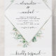 Eucalyptus Greenery Botanical and Green and Gold Geometric Watercolor Primavera Invitaciones sobre fondo blanco para primavera, verano, invierno, otoño, otoño - incluye una tipografía de escritura hermosa y elegante con hojas botánicas modernas y vegetación para la celebración especial del Día de la Boda.