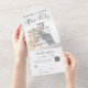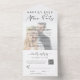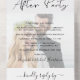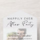 Elegante elegancia o invitación boda privada y recepción todo en una sola invitación para anunciar su matrimonio a amigos y familia y para invitarlos a una recepción post-boda o fiesta de celebración. Su invitación personalizada y su invitación superponen la foto del día de la boda, y "Feliz eterno después del Fiesta" está escrito en una mezcla de tipografía simple y un guión moderno. Ingresa la dirección URL del sitio web de tu boda para crear un código QR para que tus invitados puedan acceder a RSVP en línea y obtener información sobre alojamiento, direcciones, cualquier noche antes de fiestas y otros detalles. Una tarjeta postal RSVP desgarradora proporciona una respuesta cómoda, ecológica y sin sobres de sus invitados.
