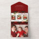 Invitación Todo En Uno Feliz Navidad Dorado deja 3 fotos Tartán Rojo