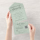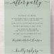 Elegante elegancia verde sabio o invitación boda privada y la invitación a la recepción de boda para anunciar su matrimonio a la familia y amigos y para invitarlos a una recepción posterior a la boda o a un fiesta de celebración. "Feliz eterno después del Fiesta" está escrito en una mezcla de tipografía simple y un guión elegante con toques. Ingresa la dirección URL del sitio web de tu boda para crear un código QR para que tus invitados puedan acceder a RSVP en línea y obtener información sobre alojamiento, direcciones, cualquier noche antes de fiestas y otros detalles. Una tarjeta postal RSVP despedazada proporciona una respuesta cómoda y sin sobres de los huéspedes que prefieran RSVP por correo.