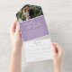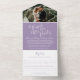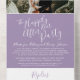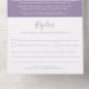 La feliz historia después de la fiesta de bodas con un RSVP desgarrador en blanco y violeta mudo. Escritura tipográfica simple, púrpura moderno en un diseño de fondo blanco después de la invitación a la boda lee The felizmente ever después de la fiesta de la boda. Diseño contemporáneo sencillo, personalizado con su propio recinto boda, tardío y boda, nombres de novias y novios y detalles de respuesta, y su foto boda favorita del día de la boda al revés. Ideal para fiestas de boda pospuestas. Este diseño no requiere sobres adicionales y tiene un RSVP perforado desmontable para respuestas fáciles. Productos de boda y otras opciones de color disponibles en la tienda. © Diseño de Sarah Trett para www.mylittleedenweddings.com