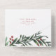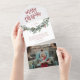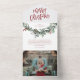 Una tarjeta de festividad de navidad festiva, roja, verde y blanca con flores de navidad, con escritura audaz y vegetación acuarela con hojas y bayas. Ofrece una excelente tarjeta de bienvenida personal o de negocios para las vacaciones.