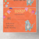 Invitación Todo En Uno Fiesta de cumpleaños de Cute Dinosaur Naranja Wate