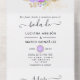 Tarjeta de invitación de boda de mardi gras púrpura y dorado con acentos de púrpura y dorado.