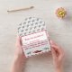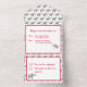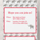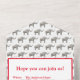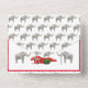 El diseño incluye espacio para la información sobre la invitación de la fiesta de los Elefantes Blancos, como dónde, cuándo, "Reglas de terreno" para jugar, más una tarjeta separada para desgarrar las lágrimas para responder. Todo el texto está en rojo. Un patrón de elefantes blancos adorna el fondo.