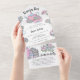 Invitación Todo En Uno Fiesta de té Baby Shower azul y rosa
