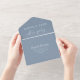 Anuncio de boda o elopement elegante azul polvoriento o invitación de recepción y anuncio de boda todo en uno para anunciar su matrimonio a familiares y amigos y para invitarlos a una fiesta de celebración post-boda. "Fiesta Felices para Siempre" está escrito en una mezcla de tipografía blanca simple y una hermosa escritura blanca con florituras. Personalice fácilmente su anuncio de elopement/boda y la invitación a la recepción. Una tarjeta postal de RSVP desprendible proporciona una respuesta conveniente y ecológica y sin sobre de sus invitados.