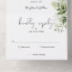 Todo en una invitación de boda pospuesta con hojas verdes botánicas rústicas y tipografía elegante. La invitación incluye una tarjeta de RSVP perforada que puede ser dirigida individualmente o dejada en blanco para que usted escriba a mano los detalles de la dirección de sus invitados. Diseñado por Thisisnotme