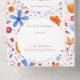 Moderna pintura de acuarela botánica de flores silvestres azules y naranjas sobre un fondo blanco. Una magnífica coordinación de todo en una sola invitación que puedes alterar para que se adapte a tu celebración. La parte inferior se puede desprender a R.S.V.P. por correo.