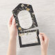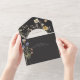 TAMBIÉN ESTÁ DISPONIBLE CON UN CÓDIGO QR A ESCALAR. Este diseño presenta un marco de flores silvestres blandas alrededor de un óvalo crema sobre un fondo de carbón vegetal. Las invitaciones todo en uno personalizadas son una combinación única de una invitación personalizado bien impresa y una postal RSVP fácil de desgarrar. ¡Y son tan fáciles de usar! Simplemente se pliega, después sella la solapa de atrás con los tres pegatinas claros incluidos y el correo. Y cuando sus invitados reciben la invitación de su personalizado, ¡simplemente sacan la tarjeta RSVP perforada y la envían de vuelta al correo!