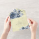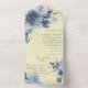 Invitación Todo En Uno Floral azul sobre amarillo pálido con código QR