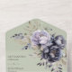 Invitación Todo En Uno Floral de negro y lavanda en verde sabio