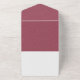 Invitación nupcial moderna todo en uno con postales perforadas de RSVP fáciles de rasgar. Sólo cambia el texto para adaptarlo a tus necesidades. Color de Borgoña mostrado con estampado floral. Utilice la parte de dirección de devolución de la plantilla si desea que la dirección se imprima directamente en la tarjeta postal RSVP o puede optar por etiquetas de dirección de devolución. Utilice la plantilla para personalizar.
