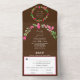 Invitación Todo En Uno Floral Verde Moderna Marrón Elegante RSVP de Boda