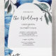 Invitación Todo En Uno Flores artísticas románticas y azules elegantes