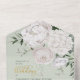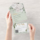 DISPONIBLE CON NUESTRO CÓDIGO SIN QR PARA ESCALAR. Sencillo y elegante, este diseño presenta una variedad de flores blancas incluyendo rosas y peonías, sobre un fondo verde de sabio suave. Agregue una dirección URL de código QR a su invitación para que los visitantes puedan acceder rápidamente a su sitio Web boda para obtener detalles, direcciones, opciones de menú y más, o agregue la dirección URL Web del Registro de regalos. Las invitaciones todo en uno personalizadas son una combinación única de una invitación personalizado bien impresa y una postal RSVP fácil de desgarrar. ¡Y son tan fáciles de usar! Simplemente se pliega, después sella la solapa de atrás con los tres pegatinas claros incluidos y el correo. Y cuando sus invitados reciben la invitación de su personalizado, ¡simplemente sacan la tarjeta RSVP perforada y la envían de vuelta al correo!