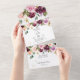 Invitación Todo En Uno Flores de Acuarela Rústicas Burgundy y Gotitas Dor