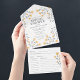 Flores acuáticas con flores silvestres ducha de novia todo en una invitación con una receta incluida que sus invitados pueden llenar, desgarrar y llevar a la celebración. Diseño con un sólido dorado amarillo en la parte posterior. Personalízalo con los detalles de su fiesta y la información del registro. El exterior está prelleno con el de su invitado y su dirección de retorno, pero se puede dejar en blanco para agregar una etiqueta o escribirla a mano.