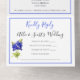 Invite a su boda a su familia y amigos con esta elegante invitación floral a Texas Bluebonnet. Cuenta con una vista de primer plano de las flores de red azul y un guión elegante con acentos azules. Personalice agregando nombres, fecha, hora, lugar y otros detalles del evento en la parte posterior. El boda floral de red azul es perfecto para los bodas de primavera y verano de Texas.