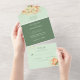 Flores de cerezo rosado, Boda All In One Invitation con flores de primavera de flores alegres pintadas a mano sobre salpicaduras de los mismos colores. El fondo es verde cal oscura y verde limón claro. Personalizar este "Flores de cerezo rosado, Invitación a la boda" para añadir un toque especial. Personalice agregando sus propios detalles de boda. Para una mayor personalización (fondo, fuentes, bordes), haga clic en el enlace "Personalizar" y utilice nuestra herramienta de diseño para modificar esta plantilla.