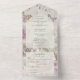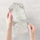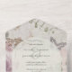 Presentando esta encantadora invitación a la boda todo en uno, con un vintage fondo de jardín floral en tonos suaves y naturales. Esta cautivadora invitación transportará a sus huéspedes a un mundo de romance y belleza, marcando el tono perfecto para su día especial rodeado de la elegancia de la naturaleza. Las invitaciones de boda todo en uno son hermosas y prácticas al combinar la invitación de boda con una postal RSVP fácil de quitar perforada. También son rápidos y fáciles de preparar para el correo. Simplemente dirija la invitación, doble el pliegue trasero y selle con los pegatinas claros incluidos. Una vez que sus invitados reciben la invitación, simplemente rompen la tarjeta RSVP perforada y la tiran por correo.