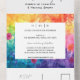 La invitación de boda de flores de prado con gradiente de acuarela brillante es una opción vibrante y encantadora para parejas que aman la naturaleza y el color. El diseño presenta un impresionante gradiente de acuarela que transita suavemente a través de un espectro de tonos brillantes y alegres. Este fondo animado está adornado con delicadas flores de prado, creando una escena hermosa e invitadora que captura la esencia de una boda alegre y romántica.