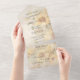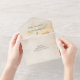 Presentamos esta rústica invitación a la boda de girasol dorado todo en uno, una invitación radiante y elegante que abarca todo lo que necesitas para marcar el tono de tu día especial, con un fascinante diseño opaco de girasol dorado. Las invitaciones de boda todo en uno son hermosas y prácticas al combinar la invitación de boda con una postal RSVP fácil de quitar perforada. También son rápidos y fáciles de preparar para el correo. Simplemente dirija la invitación, doble el pliegue trasero y selle con los pegatinas claros incluidos. Una vez que sus invitados reciben la invitación, simplemente rompen la tarjeta RSVP perforada y la tiran por correo.