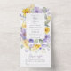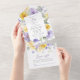 Invitación Todo En Uno Flores moradas, flores amarillas, boho, Baby Showe