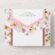 DISPONIBLE CON O SIN CÓDIGO QR PARA ESCALAR. Este diseño presenta un fondo floral acuático en diferentes tonalidades de color rosa, blanco, amarillo, lavanda y verde sobre un suave fondo color de agua rosado. El área de texto tiene un marco falso rosa dorado alrededor. Agregue un código QR a su invitación para que los visitantes puedan acceder rápidamente a su sitio Web boda para obtener detalles, direcciones, opciones de menú y más, o agregue la dirección URL Web del Registro de regalos. Las invitaciones todo en uno personalizadas son una combinación única de una invitación personalizado bien impresa y una postal RSVP fácil de desgarrar. ¡Y son tan fáciles de usar! Simplemente se pliega, después sella la solapa de atrás con los tres pegatinas claros incluidos y el correo. Y cuando sus invitados reciben la invitación de su personalizado, ¡simplemente sacan la tarjeta RSVP perforada y la envían de vuelta al correo!