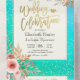 Invitación Todo En Uno Flores rosadas Blue Green Gold Confetti Wedding RS