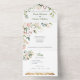 Invitación Todo En Uno Flores Rosadas y Blancas con Acentos Dorados |