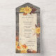 Invitación Todo En Uno Flores rusticas de otoño en madera