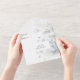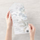 Esta moderna invitación a la boda All-in-One incluye una cautivadora colección de suaves acuarelas azules sobre un fondo blanco. Esta encantadora suite de invitados transportará a sus huéspedes a un mundo de belleza tranquila, evocando una sensación de armonía y romanticismo para su día especial. Las invitaciones de boda todo en uno son hermosas y prácticas al combinar la invitación de boda con una postal RSVP fácil de quitar perforada. También son rápidos y fáciles de preparar para el correo. Simplemente dirija la invitación, doble el pliegue trasero y selle con los pegatinas claros incluidos. Una vez que sus invitados reciben la invitación, simplemente rompen la tarjeta RSVP perforada y la tiran por correo. La adición del código QR permite a los clientes acceder fácilmente a la página web de su boda para obtener información, incluyendo detalles de recepción y opciones de cena.